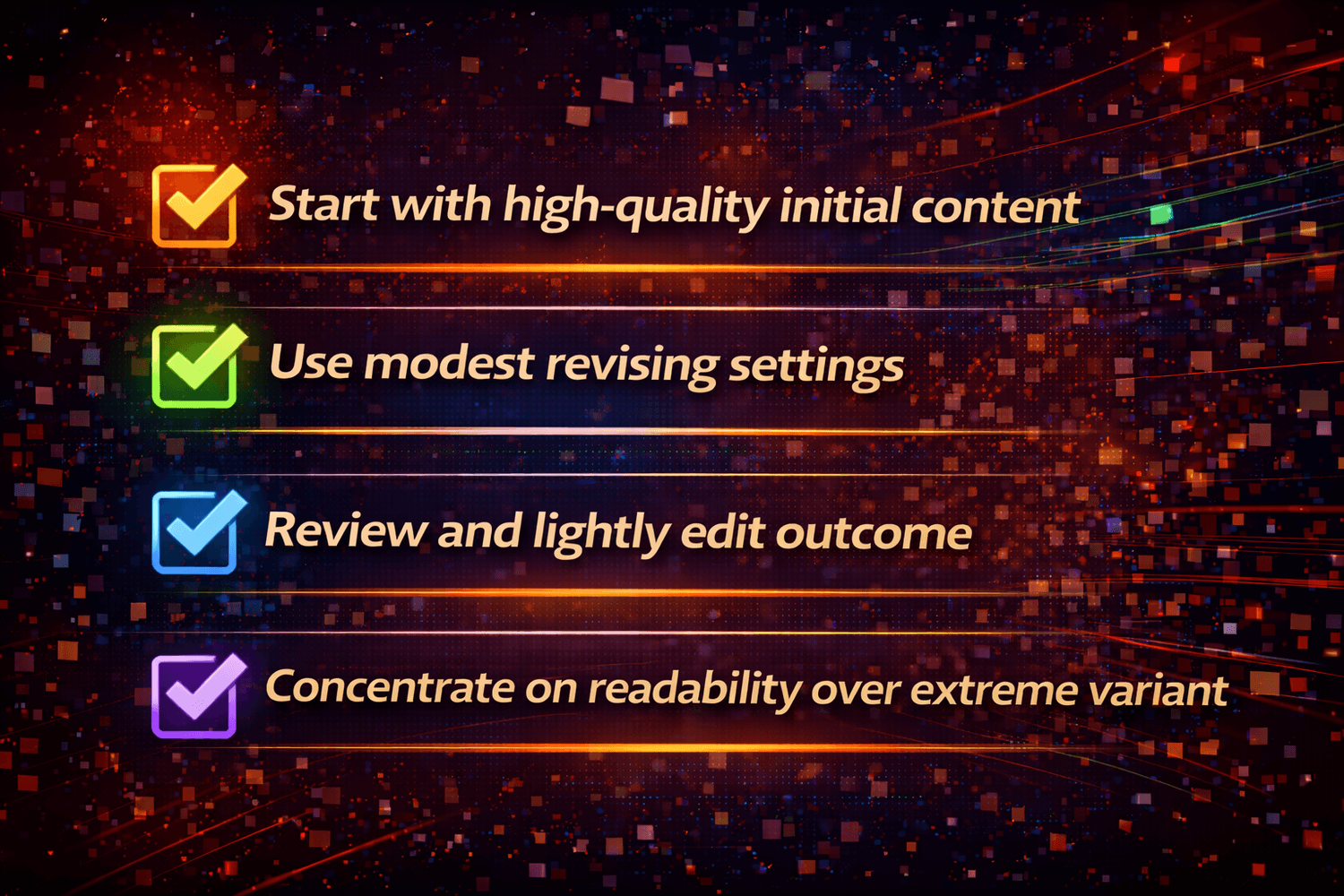 Used sensibly, Spin Rewriter AI sustains SEO process rather than changing method or editorial oversight.
